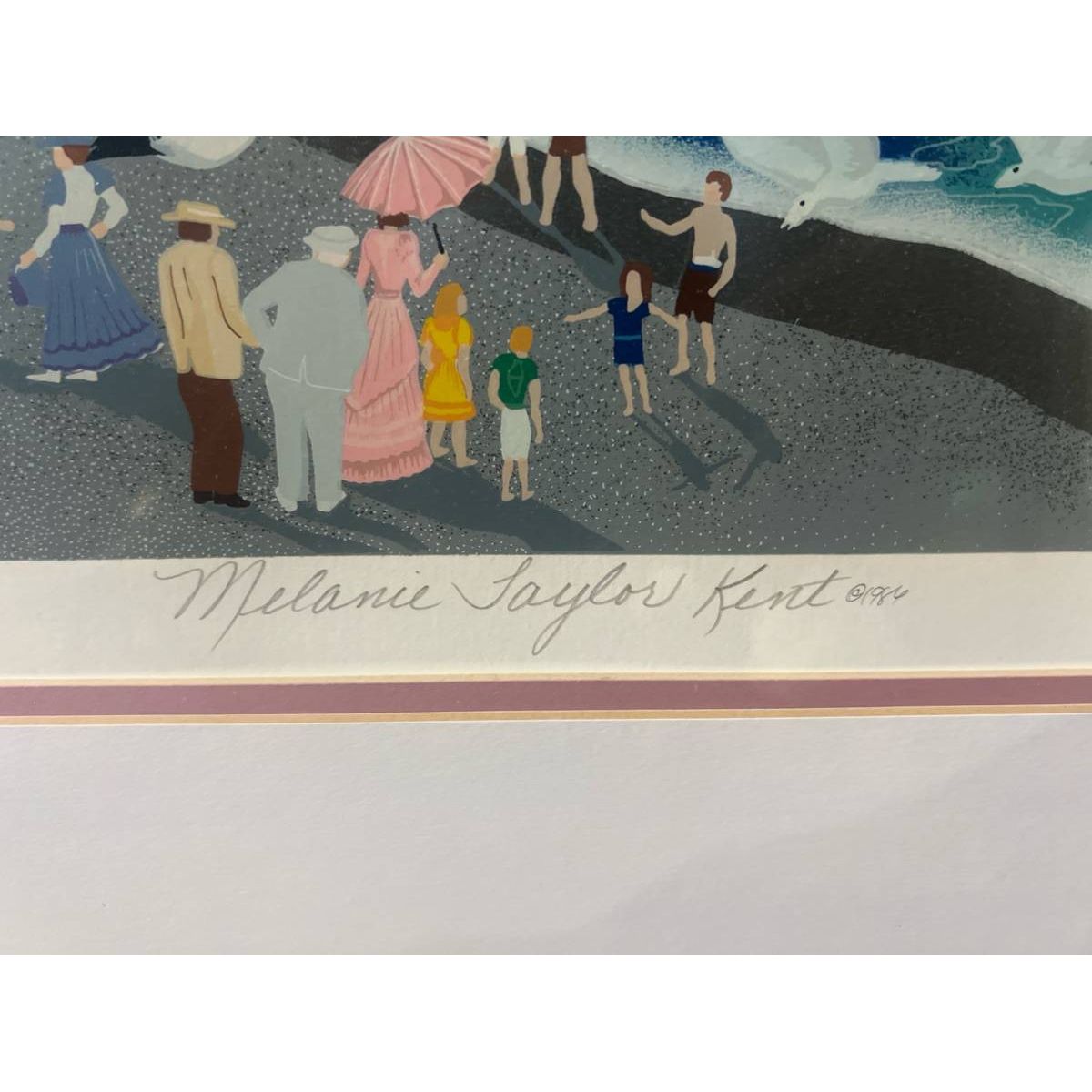 Melanie Taylor Kent – 1984. Signed limited-edition serigraph showing a lively early 20th-century Atlantic City boardwalk scene.