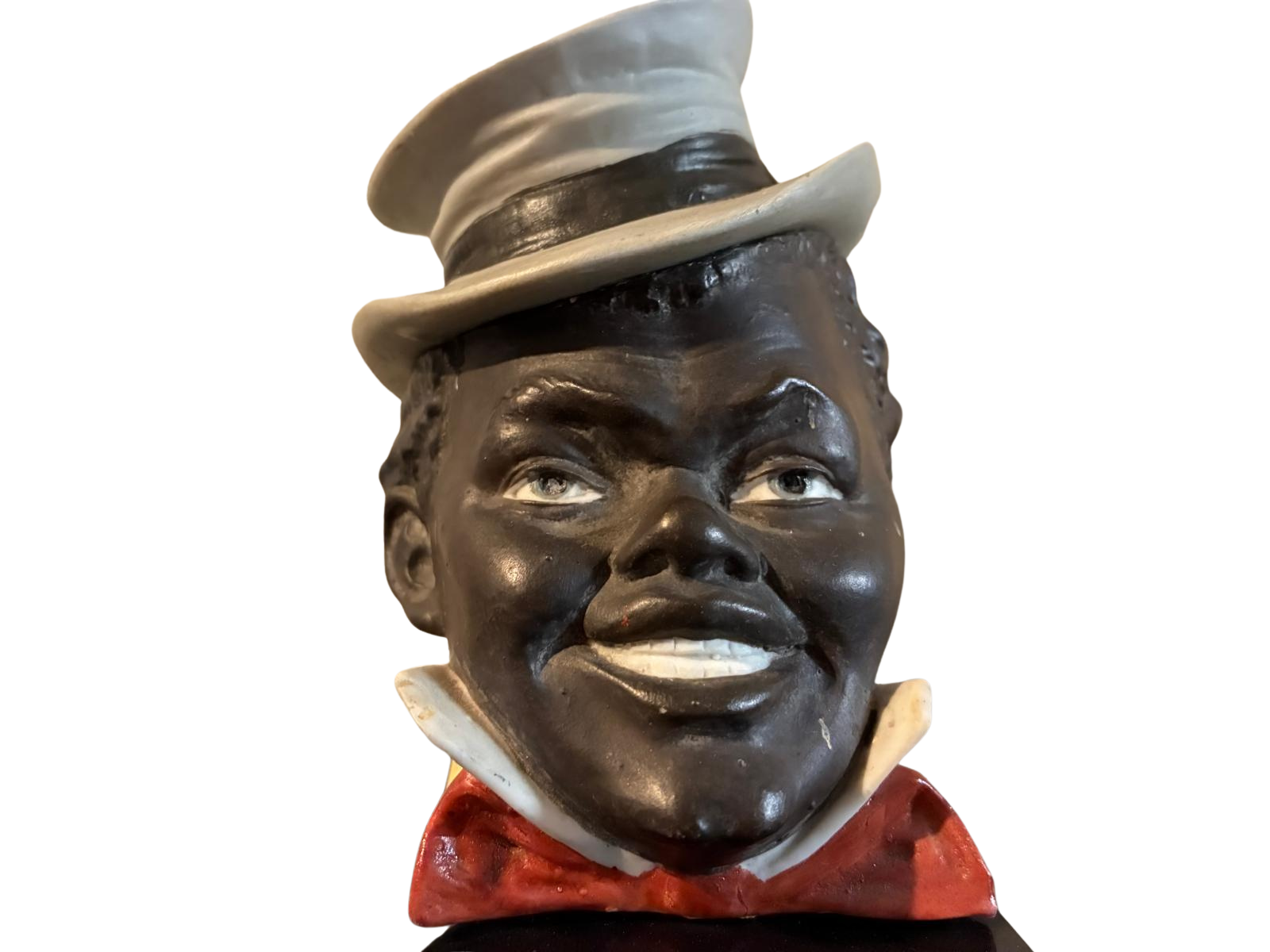 The handwritten “72” visible on the interior rim and lid base serves as a factory “match mark,” ensuring that the individually hand-fitted lid remained with its specific base during the firing and painting process. Bernhard Bloch pieces from this era are highly prized by collectors of both Black Americana and Victorian-era tobacciana. The piece captures a snapshot of late 19th-century folk art, characterized by the expressive, “jovial” facial modeling that was a trademark of Bloch’s ceramic studio.